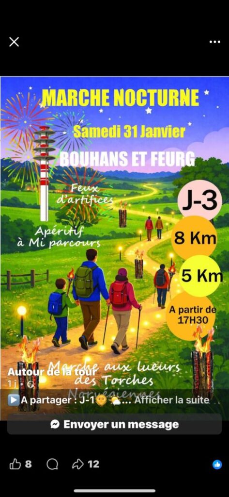 Nouveau partenariat avec l’Association « Autour de la Tour », présidée par Tony Rigollot, pour coorganiser l’évènement « Marche nocturne » convivial, accessible à tous publics et plutôt festif (parcours illuminé par des bûches norvégiennes, apéro offert à mi-parcours à côté d’un bon feu, feu d’artifice également prévu près de la Tour…) suivi d’un repas savoyard! Ce fut une chouette soirée!